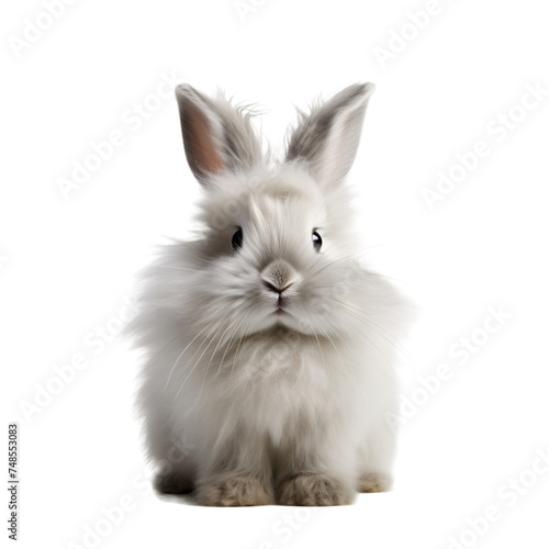 © Dinithi, Obraz premium White Fluffy rabbit on white background