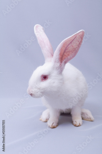 Fototapeta premium white fluffy rabbit with big ears sit