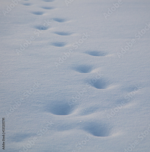 © schankz, Naklejka premium White fluffy snow on the ground as a background.