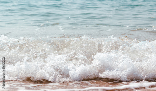 © SUKON, Fototapeta premium White foam of the sea at sandy beach