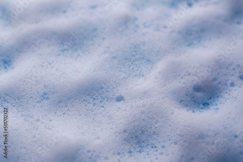 © New Africa, Obraz premium White foam on light blue background, closeup