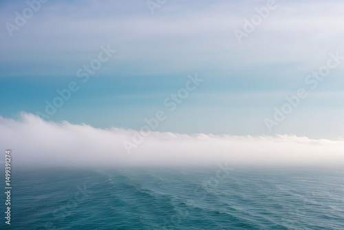 Obraz premium White Fog Bank Rolling Across a Teal Ocean Horizon