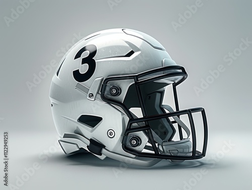 © rak, Fototapeta premium White Football Helmet with Number Three