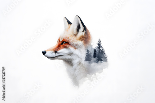 © Oksana_Latysheva, Fototapeta premium White fox head portrait, wildlife, close-up, isolated on white background