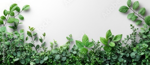 Fototapeta premium White frame adorned with lush green leaves and branches providing ample copy space for text and design elements