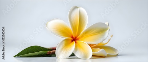 Fototapeta premium White frangipani flowers isolated on white. AI generated
