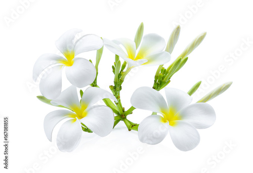 Naklejka premium white frangipani (plumeria) tropical flower isolated on white background