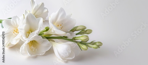 Fototapeta premium White Freesia with copy space image for St. Valentine's Day, birthdays, weddings, engagements, and other holiday themes.
