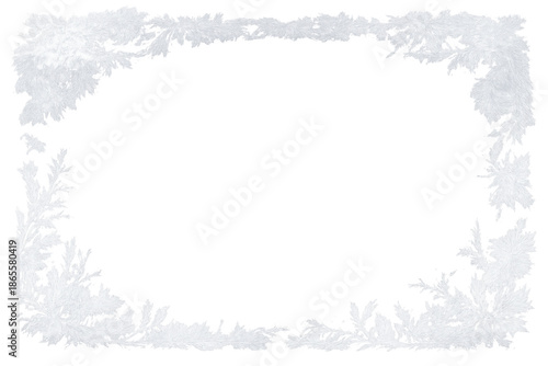 Fototapeta premium White frosty winter border creating a frozen ice frame with crystal patterns...