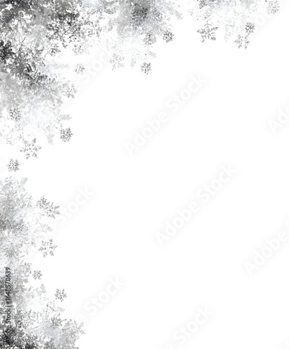© Daniel, Fototapeta premium white frozen ice snowflakes border vertical frame background isolated on white or transparent png