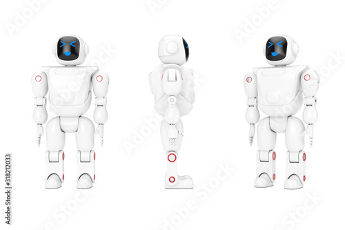 © doomu, Fototapeta premium White Futuristic Cartoon Toy Robot. 3d Rendering