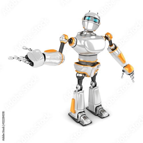 © VERSUSstudio, Naklejka premium White Futuristic Robot Showing Gesture