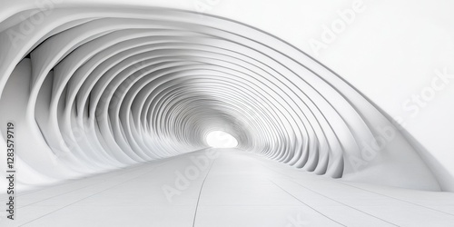 © Boke, Naklejka premium White futuristic tunnel with light at the end leading to hope and new discoveries