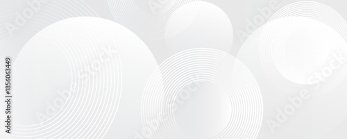 © Ragil, Fototapeta premium White geometric abstract background overlap layer on bright space with lines effect decoration.