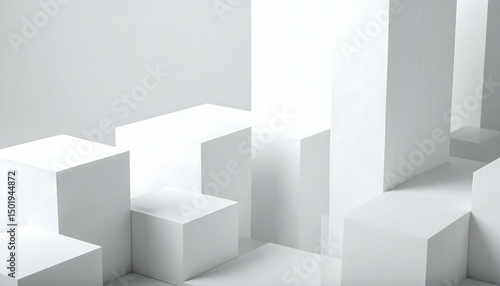 © suu, Obraz premium White Geometric Cubes Abstract Background