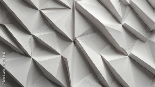 © GenArt Stock, Obraz premium White geometric 3D abstract pattern with folded facets