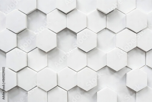 © Sumaiya, Fototapeta premium White geometric hexagonal tiles forming a subtle textured 3D abstract pattern