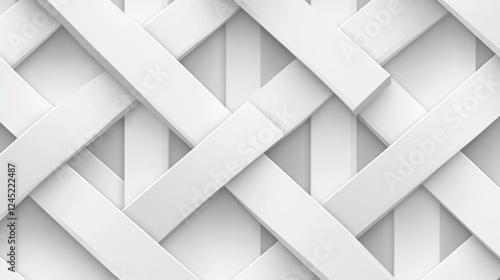 © wannathon, Fototapeta premium White Geometric Interwoven Pattern Background Texture
