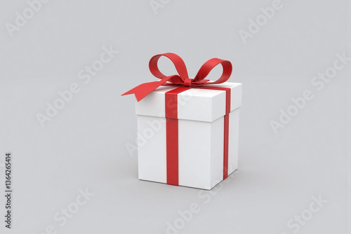 © Mingqing, Fototapeta premium white gift box with a red ribbon and bow