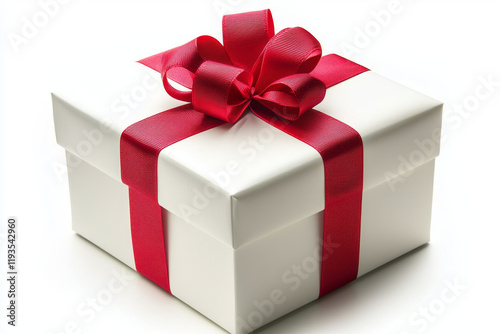 Fototapeta premium White gift box with a red ribbon bow.