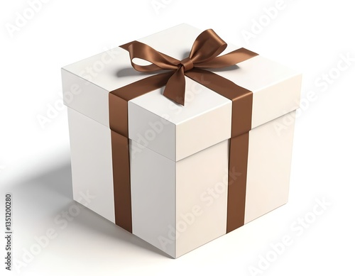 Fototapeta premium White Gift Box with Brown Ribbon