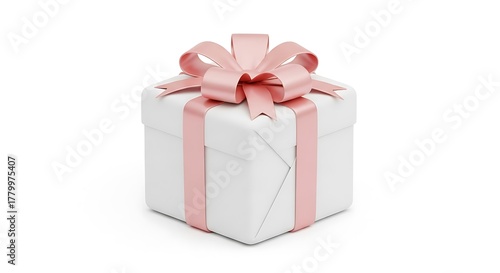 Fototapeta premium White gift box with pink ribbon isolated on white background