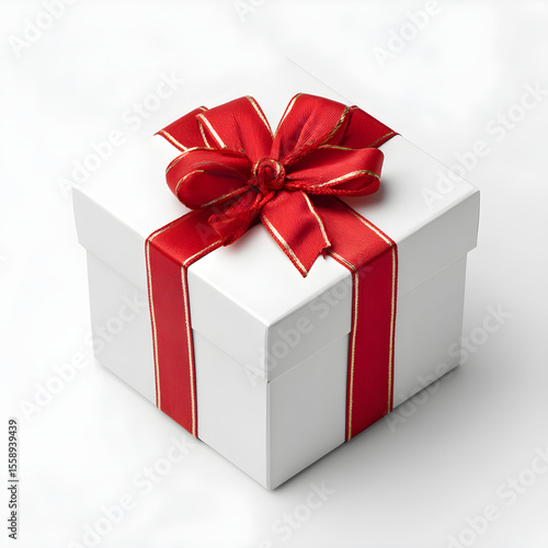 © Anas, Obraz premium White Gift Box with Red and Gold Ribbon Bow Tied