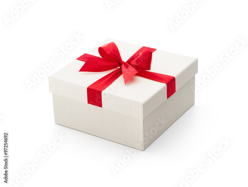 © phive2015, Fototapeta premium White gift box with red bow isolated on white background - Clipping path included