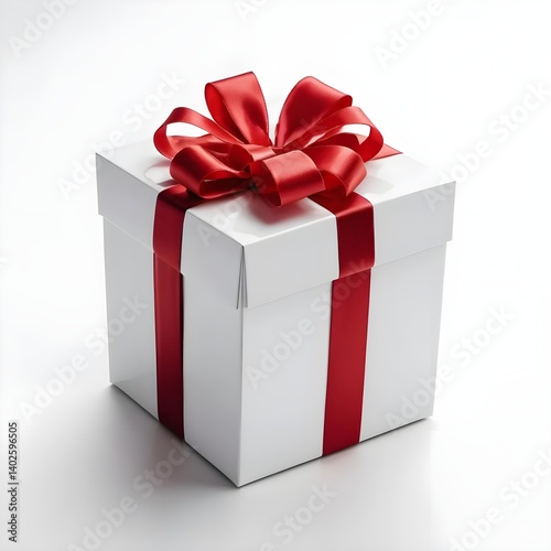 Fototapeta premium White Gift Box with Red Ribbon