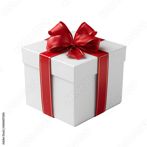 Fototapeta premium White gift box with red ribbon,