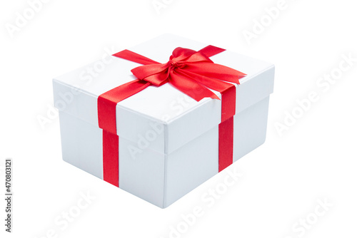 Obraz premium White gift box with red ribbon