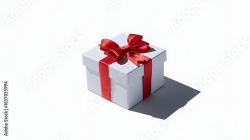 © sungedi, Fototapeta premium White gift box with red ribbon and bow.