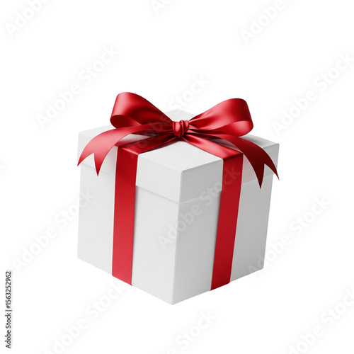 © Noor Rahman , Obraz premium White Gift Box with Red Ribbon Bow