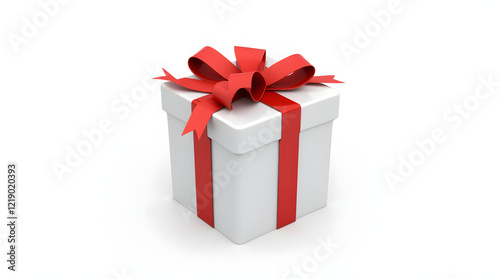 © Thestudio, Fototapeta premium White gift box with red ribbon bow, isolated on white