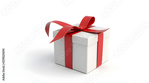 © Thestudio, Fototapeta premium White gift box with red ribbon bow, isolated on white