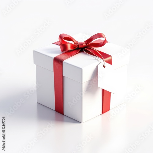 © Imam, Obraz premium White gift box with red ribbon bow, isolated on white