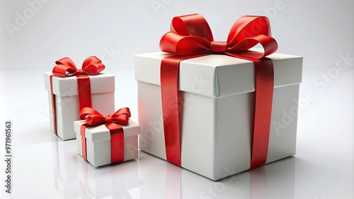 © suchetpong, Fototapeta premium White gift box with red ribbon bow tie in asymmetrical angle