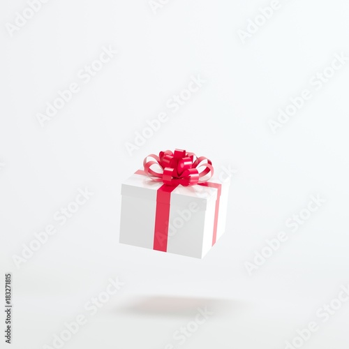Obraz premium White gift box with red ribbon floating on white background. minimal...