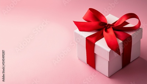 © Noah, Fototapeta premium white gift box with red ribbon on pink background