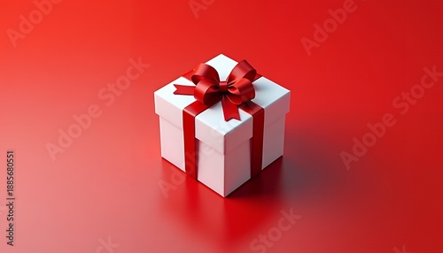 Fototapeta premium White Gift Box with Red Ribbon on Red Background present