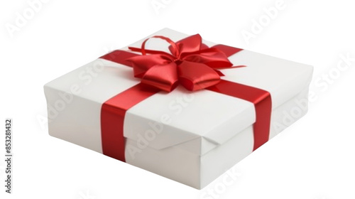 © PerfectPhoto, Fototapeta premium White gift box with red ribbon on white background