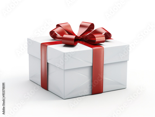 © MdSaiful, Fototapeta premium White gift boxes with red ribbon