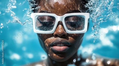 © GoodandEvil, Fototapeta premium White glasses and water splashing around the person’s head