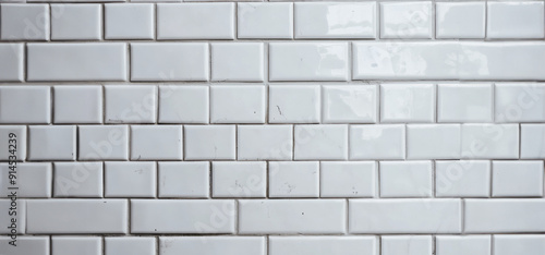 © BraveSpirit, Fototapeta premium White Glossy Subway Tiles Forming A Seamless Pattern On A Kitchen Wall
