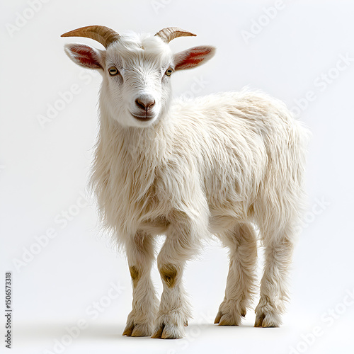 © FatrurRohman, Fototapeta premium White Goat Gazing Isolated Portrait