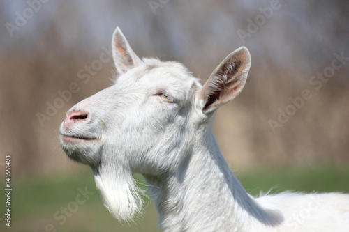 © Галина тарасенко, Fototapeta premium white goat in a green meadow namascusa