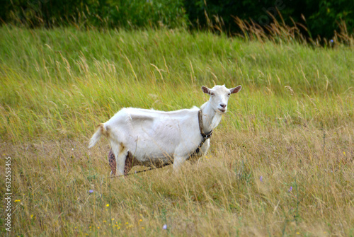 © Irina, Fototapeta premium white goat in the field isolated close up