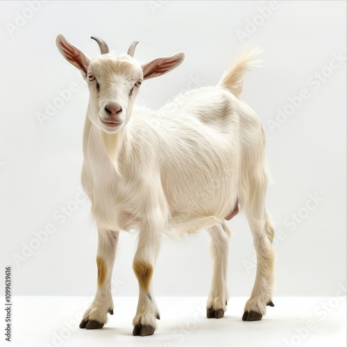© imagepocket, Obraz premium White goat isolated on white background.