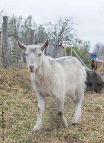 Obraz premium white goat portrait in country farm
