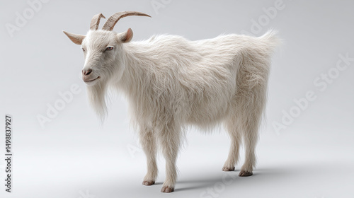 © Owais, Obraz premium White Goat Standing on White Background
